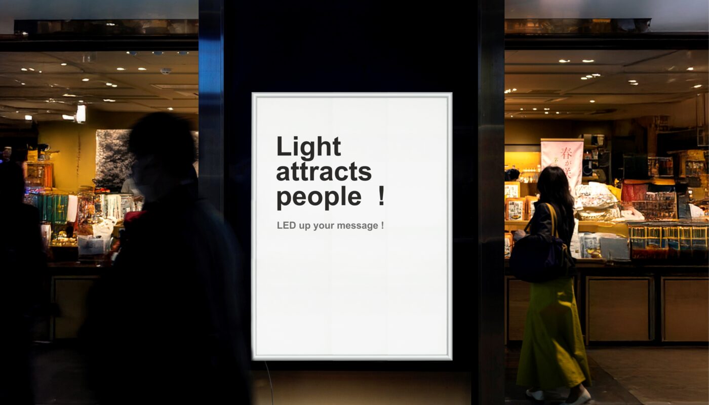 Double-sided LED light frames are ideal for shop window advertising and attract attention at night or in bad weather.