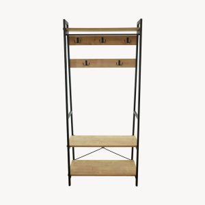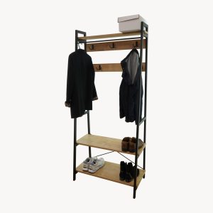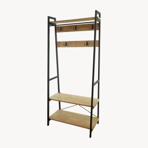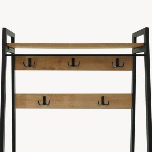 With its sturdy materials, engineered MDF shelves, black powder-coated metal profiles, and durable three-hanging twin hooks, this coat stand ensures a long product life cycle.