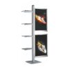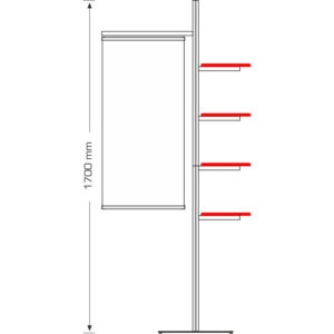 Multi Display with Banners and Shelves is a floor standing stand to display your posters. You can display banners and products with this multi-display stand. However, if you want to change accessories, or add more like brochure holders, frames, etc., this product is open to making different configurations.