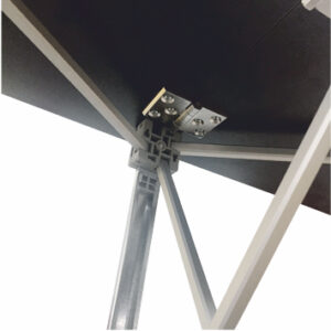 Pop-up Textile Counter has practical, easy and quick usage. No tools are required for mounting. Plastic parts are interlaced for extra stability to the profiles. On the other hand, your prints are easily attached to the main construction with velcro straps.