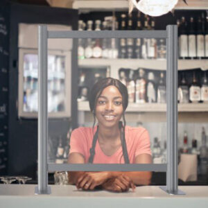 Reception Sneeze Guard is an elegant social distancing product for use in any kind of countertop. Unique with its design and robust with anodised aluminium thick profiles.