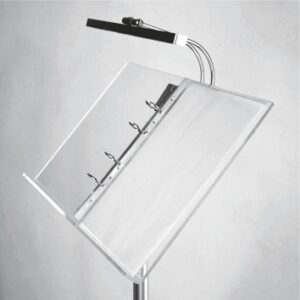 Ringbinder Information Stand with Light is freestanding information and menu stand with anodized aluminium structure and flute light. The main feature of this stand is holding a ring binder.