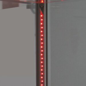 It is very durable with an anodised aluminium structure. Besides, we offer a generous size of 950 mm. width x 500mm. depth and 2000 mm. height. What’s more, we deliver this LED glass cabinet assembled, so you can display your products upon receiving.