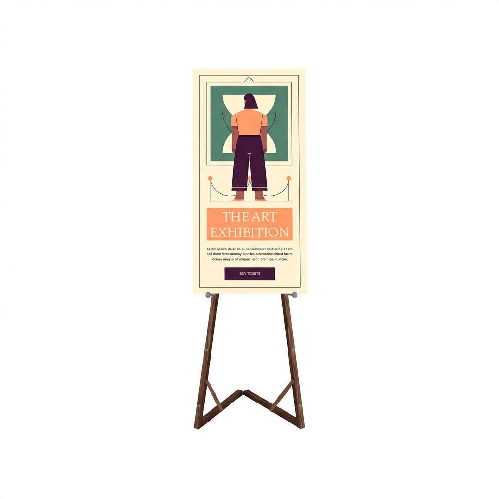 Wooden Floor Easel – Adjustable is a natural and elegant display solution made from high-quality beech wood. Its foldable structure allows easy transport and storage, while the adjustable pegs enable you to present different poster, board, or canvas sizes comfortably.