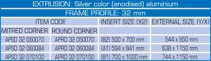 * 20 mm x 30 mm standing profiles. * Water resistant with integrated water outflow holes. * 32 mm snap frames with round or mitred corners. * Galvanised steel backplate option available. * Flat packed in doublewall carton boxes with corrugated corner supports. * Optional logo holder and logo plate for DINA1 size |