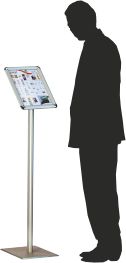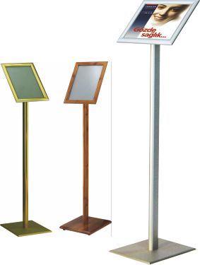 * A Classic design featuring. * Our new mechanism enabling both portrait and landscape positioning of the snap frame in the same display unit. * Stainless 7 mm thick brushed aluminium basepalte. * Flat packed with assembly instructions to save space.