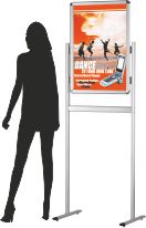 dynamic poster stand, with front brochure holder, double sided, slide in