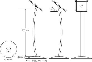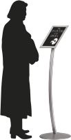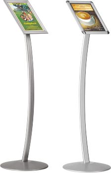 * Stylish bended pole with a modern look. * A4 or A3 snap frames withround corners. * Our new mechanism enabling both portrait and landscape positioning of the snap frame in the same display unit. * Convex or concave using of poles up to liking. * Durable with 340 mm diameter powder coated steel baseplate. * Flat packed with assembly instructions to save more space.