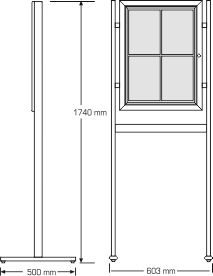 * Free standing display unit. * High quality product for promotional posters, notices or menus etc. * Weatherproofed. * Suitable internal or external use. * Easy image to change. * Easy to install. * Key locks for security. * Resilient acrylic front face (3 mm), for image protection. * Galvanised steel, powder coated white finish backplate.