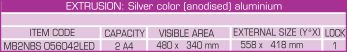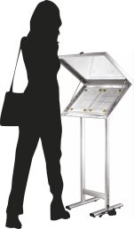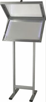 * LED edge-lit lockable Menu Cases each with a magnetic back panel. * Lockable door with 4mm acrylic glass. * Birght LED light source. * Silver anodised finish. * Complete with LED lights for an eye catching illuminated display.