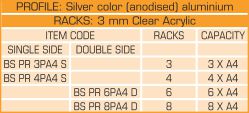 profile. * Integrated Delta header enabling double sided logo area. * 197 mm x 80 mm header display area. * 3 mm thick clear acrylic shelves.