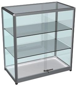 * Full-vision tempered glass construction, much more durable, much less risk of breaking than traditional glass cabinets. * Locking doors keep merchandise * These glass displays shipped unassambled. Easy assembly !. * High quality silver aluminium structure. * Lockable sliding glass doors (lock included). * Lockable storage cupboard (lock included). * Lockable castors. * Two adjustable bevelled edge glass shelves. * Chorome plated fittings. * This shop counter is perfect for a large variety of shops, jewellers, showrooms, electronic and aoutomotive retailers, exhibitions, museums, reception areas and libraries.
