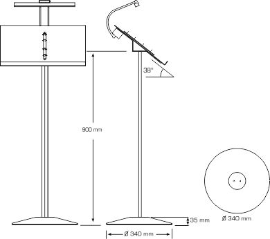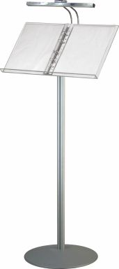 * Menu Stand with ring binder mechanism for A4 pages. * Illumination with LED flute light. * Transparent acrylic shelf catching the eye level. * Ideal for menus and price lists. * Suitable for indoor use with a heavy steel base. * Logo topper versions available upon request.