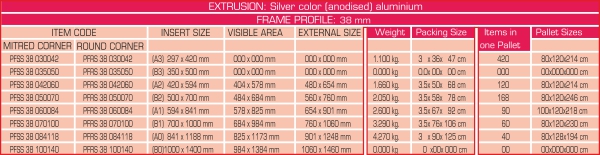 * Available with mitred or round corners. * Natural silver anodised finish as standard. * RAL colours available upon request. * Screws and anchors provided for assembly. * Optional hangers or double sided tape available for easy assembly. * Each frame is packed in individual carton