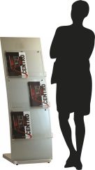 * These literature holders, such as directory displays or magazine posts, are the most elegant appearance to showcase printed materials. * These magazine stands, literature holders are an effective marketing mechanism for any business. * Ideal for trade shows, shopping malls, restaurants, showrooms, car dealerships and events. * Main body produced from high quality aluminium composite material. * MDF base with silver finish. * It can also go flat for easy packing and storing.