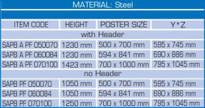 * Poster display stand with snap frames, for indoor and outdoor use. * Water resistant with integrated water outflow