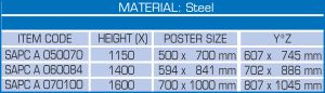 * Poster display stand with snap frames, for indoor and outdoor use. * Water resistant with integrated water outflow