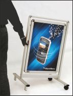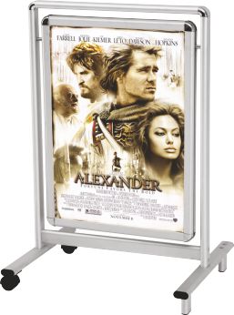 * Swinging option creates extra attraction. * Portable with two locking casters. * 25 or 32 mm round corner snap frames allowing fast poster changes. * Stable with 25x52 mm standing poles and T foot system. * 0.5 mm galvanised steel or 1.3 mm polystren would be used as backplates upon your request. * Flat packed to save space.