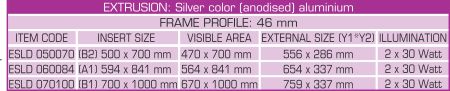 * Ideal for high traffic areas to create attention to your message. * Illuminated by T8 flourescent ensured stability with 6 mm thick powder coated steel baseplate with plastic bumpers. * All electrics in compliance with CE standarts. * Elegant with the decorative brushed aluminium panel.